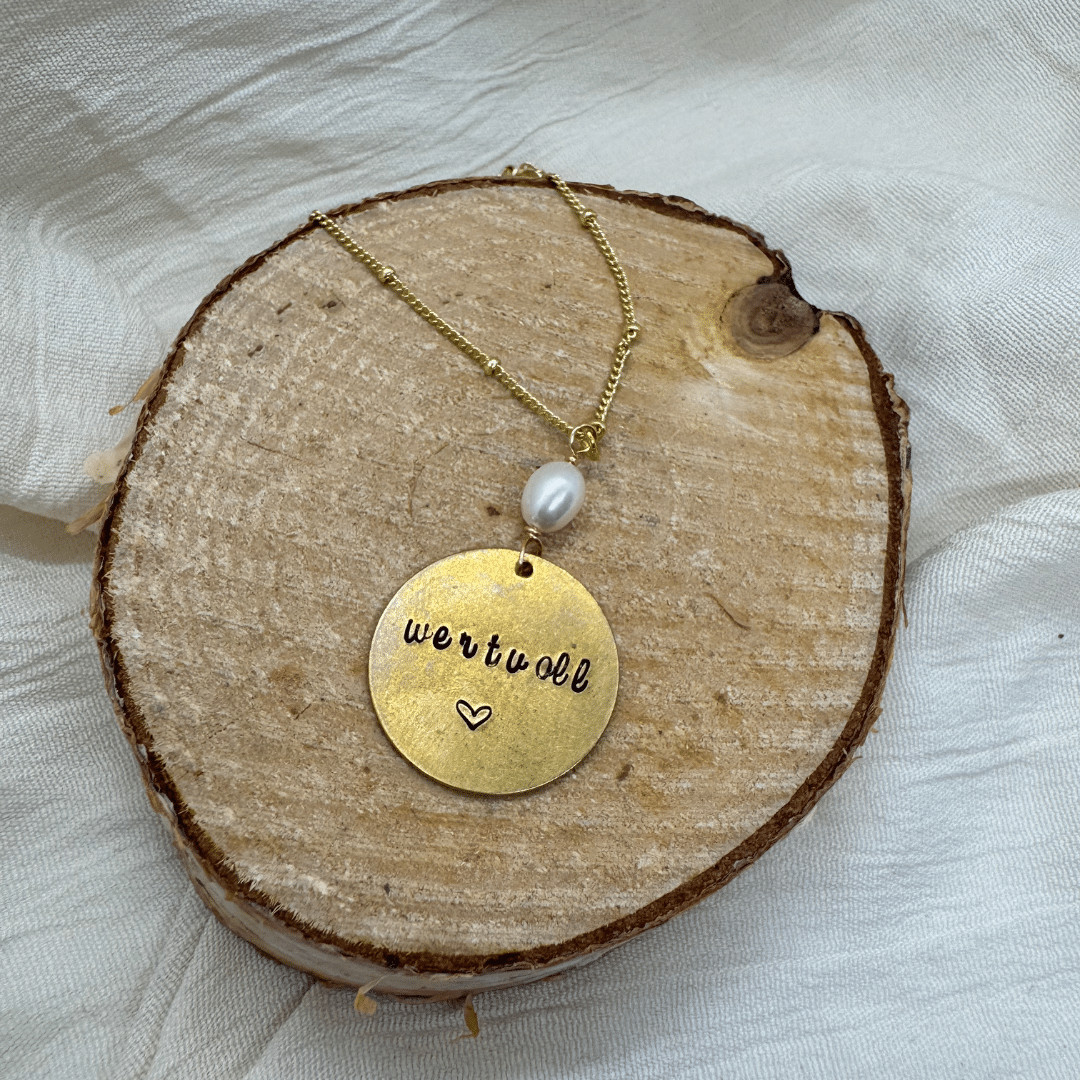 Der Anhänger aus Messing wird von Hand graviert – mit viel Liebe und größter Sorgfalt. Du möchtest es noch persönlicher gestalten? Du entscheidest, was dich begleiten soll. Ob ein einzelnes Wort, Name oder zusätzliches Symbol