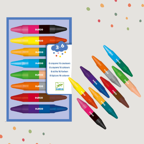 8 Doppelseitige Wachsmalkreiden sind die perfekte Wahl für Kinder von 3 bis 6 Jahren, um ihre Kreativität voll zu entfalten. Mit 16 leuchtenden Farben in nur 8 Stiften ist es besonders praktisch, die schönsten Kunstwerke zu gestalten. Die dicke und kurze Form der Kreiden ist speziell für kleine Kinderhände entwickelt und bietet optimalen Halt, während die widerstandsfähigen Minen für kräftige, deckende Farben sorgen.