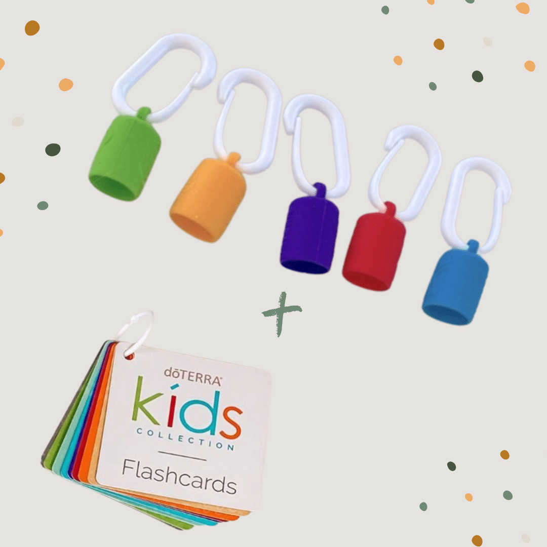 Die Silikon Kappen sind einzeln oder als praktisches Set erhältlich. Wer sich für das Set entscheidet, erhält zusätzlich die Flashcards gratis dazu – eine tolle Möglichkeit, spielerisch mehr über die Anwendung der doTERRA Kids Collection zu lernen. Perfekt für kleine Entdecker, die ihre Öle immer dabeihaben möchten.