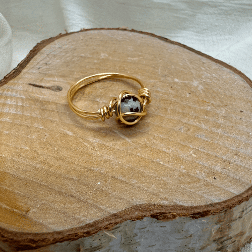 Dieser außergewöhnliche Drahtring mit einer Dalmatin Jasper Perle ist das perfekte Beispiel für kunstvolle Handwerkskunst. Jeder Ring wird mit viel Liebe und Hingabe von Hand gefertigt, was ihn zu einem einzigartigen Unikat macht. Der Ring aus hochwertigem 18k vergoldetem Kupferdraht ist nicht nur langlebig, sondern behält auch seine Schönheit – ohne sich zu verfärben – auch bei täglichem Tragen.