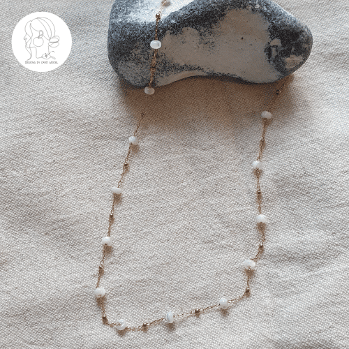 Tauche ein in die Leichtigkeit des Sommers mit unserer zarten goldenen Kette "Sommerbrise". Diese einzigartige Kreation besteht aus vergoldetem Edelstahl und ist mit wunderschönen weißen Glasperlen verziert, die an sanfte Sommerbrisen erinnern. Die Kette ist nicht nur ein elegantes Accessoire, sondern auch wasserresistent und hypoallergen, perfekt für den täglichen Gebrauch und für alle, die Wert auf Qualität und Stil legen. Trage sie allein für einen subtilen Hauch von Eleganz oder kombiniere sie mit anderen Schmuckstücken für einen individuellen Look. "Sommerbrise" ist nicht nur eine Kette, sondern ein Statement für die Leichtigkeit und Schönheit des Sommers.