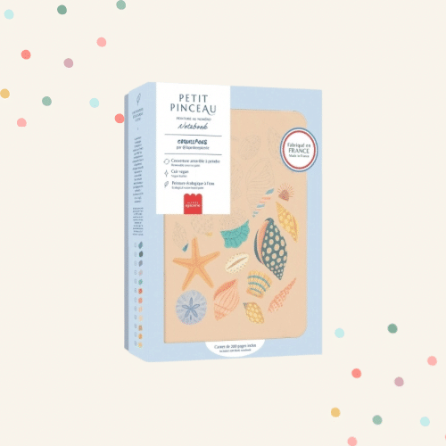 Mit diesem liebevoll zusammengestellten DIY-Set gestalten Sie Ihr persönliches A5-Notizbuch mit einer Hülle im maritimen Muschel-Design – ganz einfach und entspannt nach dem Malen-nach-Zahlen-Prinzip.