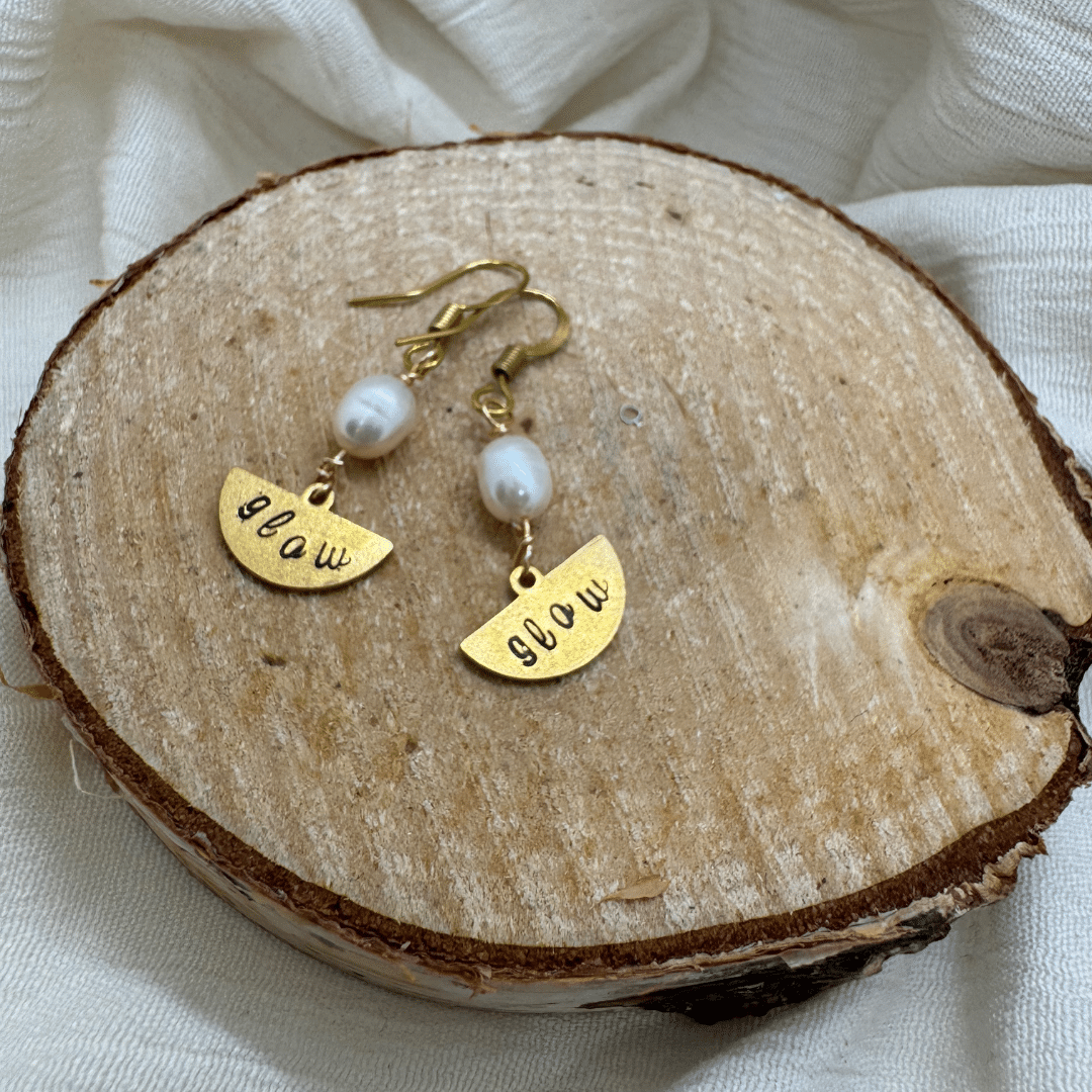 Die Ohrringe sind bewusst schlicht gehalten, damit das Wort im Mittelpunkt steht.