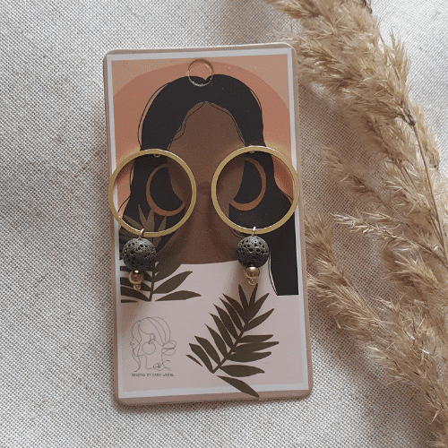 Die Kombination aus warmem Messing und dem dezenten Schwarz der Lavaperlen ergibt einen eleganten Kontrast, der sich sowohl für den Alltag als auch für besondere Anlässe eignet. Mit den "Ruhe" Ohrsteckern hast du ein persönliches Accessoire, das dich stilvoll begleitet und gleichzeitig die wohltuenden Effekte deines Lieblingsöls nah an deine Sinne bringt.