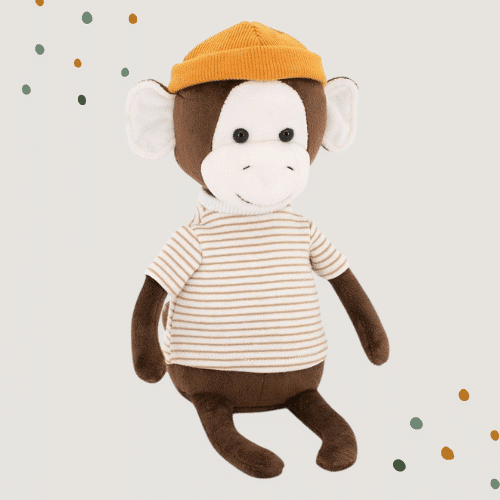 Das zauberhafte Plüschtier Charlie der Affe ist liebevoll gestaltetet, das sofort die Herzen der Kinder erobert. Hergestellt aus weichem Stoff (100 % Polyester), eignet sich Frankie perfekt zum Kuscheln und Spielen für Kinder ab 0 Jahren. Mit seinen sanften, kindgerechten Materialien ist Charlie der ideale Begleiter für dein Kind. Er ist ca. 20 cm groß.