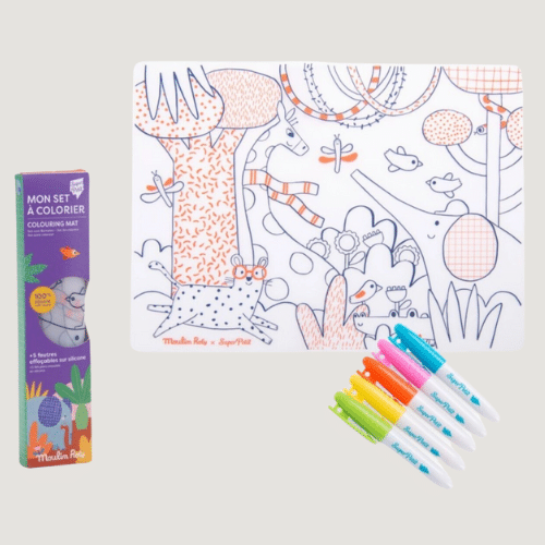 Das Silikon-Tischset zum Ausmalen aus der Toupitis-Kollektion, in Zusammenarbeit mit Super Petit entworfen, bringt jede Menge Spaß und Kreativität an den Esstisch. Mit dem abwischbaren Silikon-Tischset zum Ausmalen können Kinder beim Essen malen, kritzeln und gestalten – ganz ohne Chaos! Ob zu Hause oder unterwegs, dieses Set ist der perfekte Begleiter für kreative Kinder ab 3 Jahren.