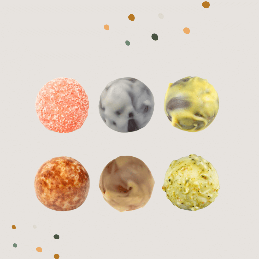 6 köstliche Kugeln Glück – alkoholfrei, bio, handgemacht: Die Zotter Pralinen „Süße Freude“ vereinen sechs liebevoll hergestellte Pralinen mit cremigen Füllungen, umhüllt von feinen Kuvertüren und gerollt in knackigen oder fruchtigen Toppings. Jede Praline ist ein kleines Geschmackserlebnis für sich: